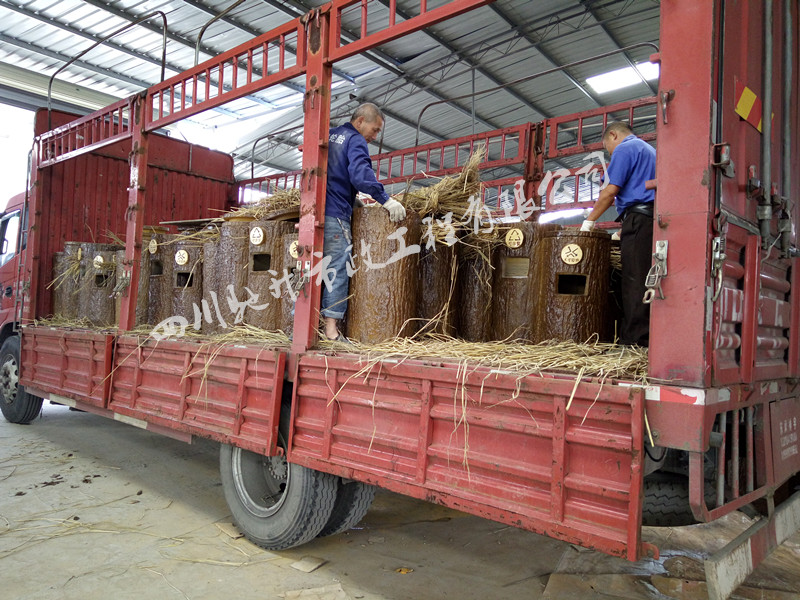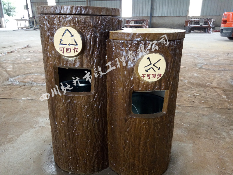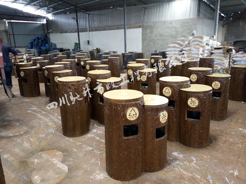 2016年10月,我司承接的貴州省六盤水市盤縣景區仿樹皮雙桶垃圾桶已生產完畢發貨。
